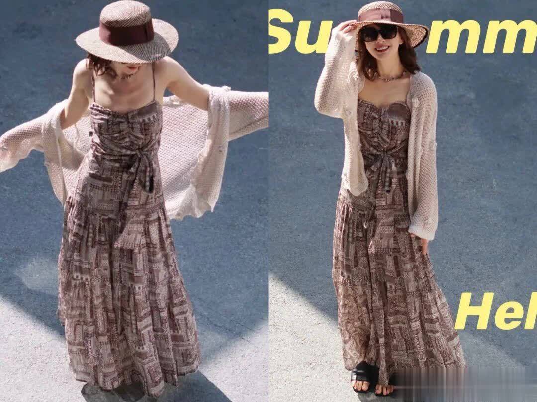 想要出门游玩时穿,可以用一件波西米亚吊带连衣裙,来叠穿一件白色的薄款镂空开衫。